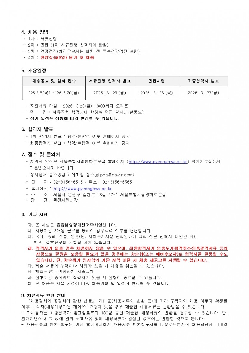 평화로운집 2026년 1차 직원채용공고 페이지 정보 작성자 한동주 작성일 26-03-05 16:17 조회 756회 댓글 0건 첨부파일 파일 2026년 1차 생활지도원.pdf (68.3K) 20회 다운로드 DATE : 2026-03-05 16:49:51 파일 시립평화로운집 입사지원서이력서,자기소개서및개인정보동의서.hwp (54.0K) 16회 다운로드 DATE : 2026-03-05 16:17:33 본문 이전글 다음글 목록 답변