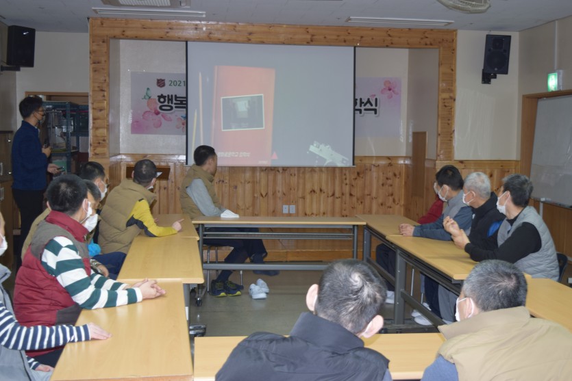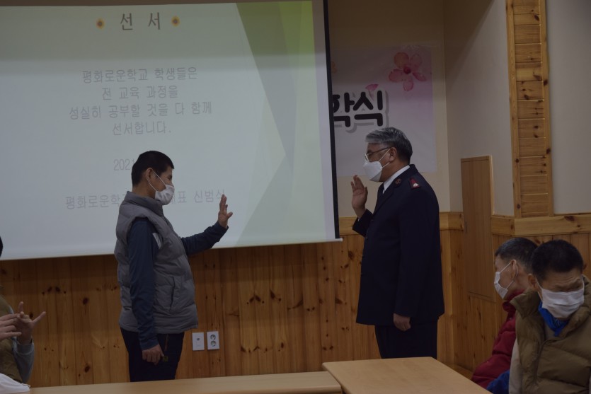 거주인 이야기 | 평화로운학교 개학식 페이지 정보 작성자 한동주 작성일 21-03-11 11:31 조회 12,252회 댓글 0건 본문 평화로운학교 개학식이 3월3일 진행되었습니다.평화로운학교는 본원의 지적장애인들을 대상으로 기초학습, 체육활동 및 사회체험등의 배움의 기회를 제공하는 우리들만의 학교입니다.3월부터 12월까지 매주 정기적으로 진행되는 활동입니다. 학생선서와 함께 학생소개 및 활동을 함께 영상을 관람하고, 개학선물을 받으며 평화로운학교에 대한 기대감을 높였습니다. 올해도 열심히 수업에 참여할 수 있도록 응원해주세요. 이전글 다음글 목록