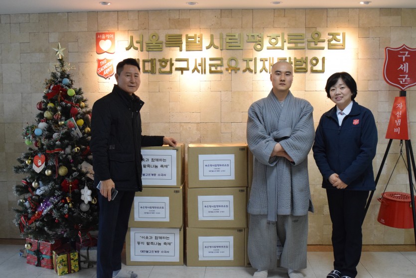 후원자·봉사자 이야기 | 대한불교조계종 수국사의 나눔 페이지 정보 작성자 박상은 작성일 19-12-23 13:42 조회 13,421회 댓글 0건 본문 12월 22일 일요일,동짓날을 맞아대한불교조계종 수국사에서 팥죽 150인분을 후원해주셨습니다.많은 양의 맛있는 팥죽을 후원해주신 덕분에평화로운집 가족 모두가 든든히 잡수시고행복한 동짓날을 보냈습니다.평화로운집에 관심 가져주시고 찾아주신수국사 신도 회장님과 스님께 진심으로 감사드립니다^-^ 이전글 다음글 목록