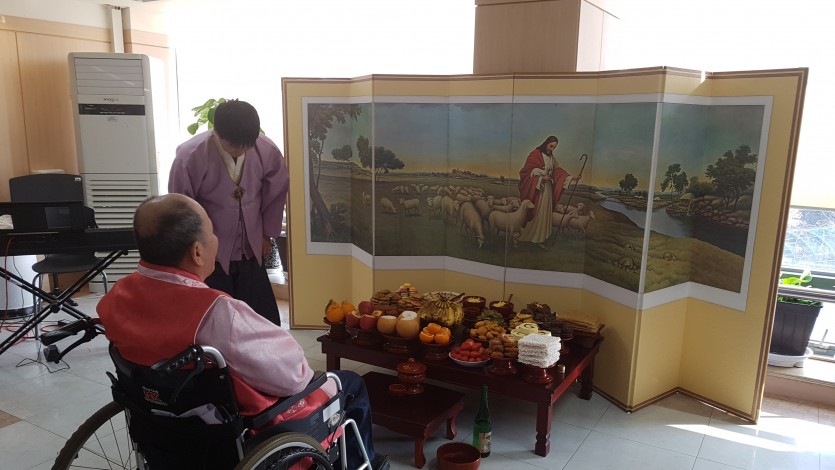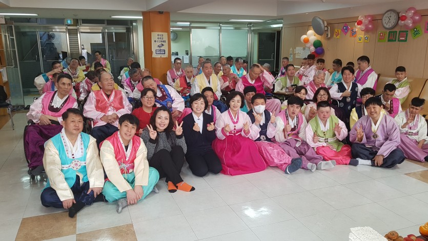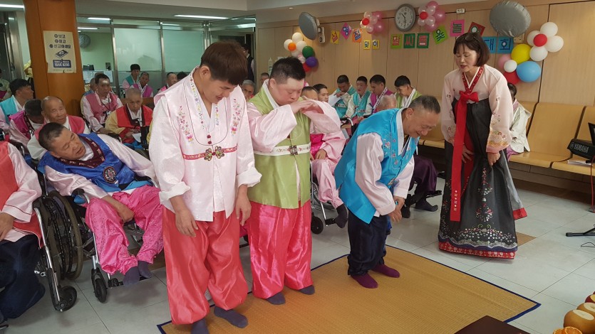 오전에는 차례상을 차리고 직원과 거주인 모두 한복으로단장한 후 조상에게 예를 다하고