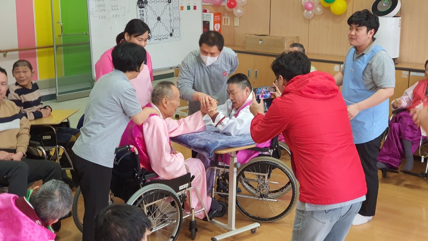 3개의 생활관에서 생활하시고 계신 가족들이 모여 팔씨름, 각 생활실 별 윷놀이 예선전이 진행되었는데