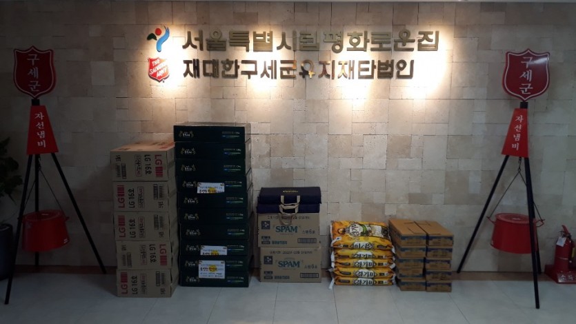 9월5일 구세군본영에서 진행하는 추석나눔행사에서 후원물품을 전달받았습니다.