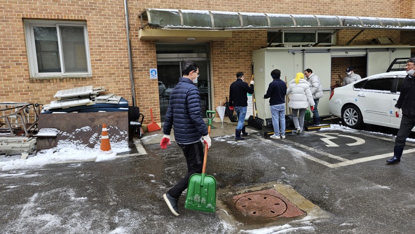 후원자·봉사자 이야기 | 0117 눈오는날 제설작업 페이지 정보 작성자 한동주 작성일 24-01-17 14:04 조회 8,168회 댓글 0건 본문 1월17일 포근한 날씨속에 눈이 내립니다.순식간에 내린 눈이 쌓이기 시작하네요.평화로운집 직원들이 일사분란하게 자향정과 건물 주변의 눈을 치웠습니다. 이전글 다음글 목록