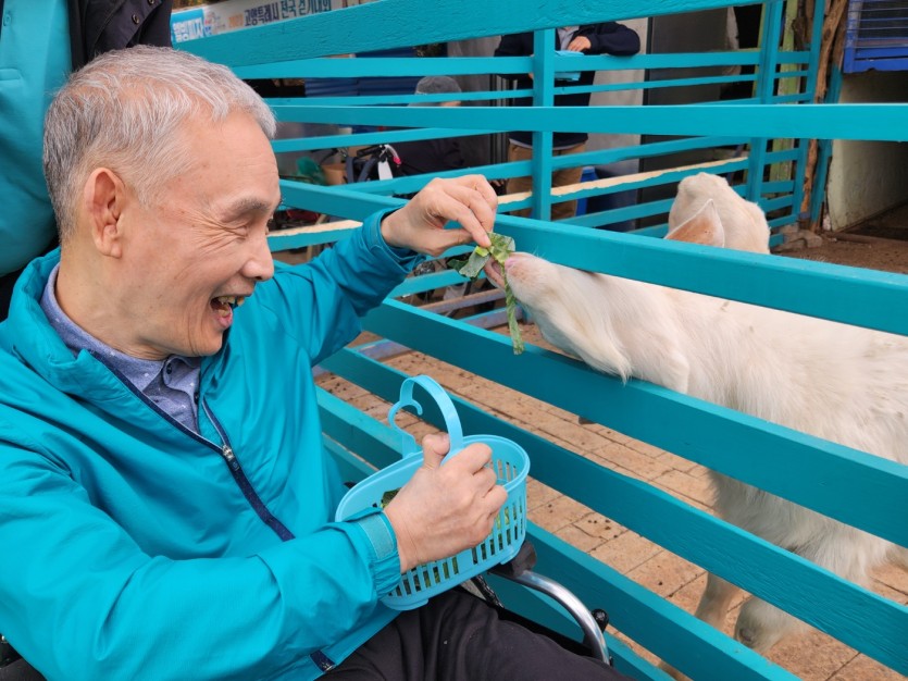 염소아기, 토끼 아기들에게 먹이도 주고
