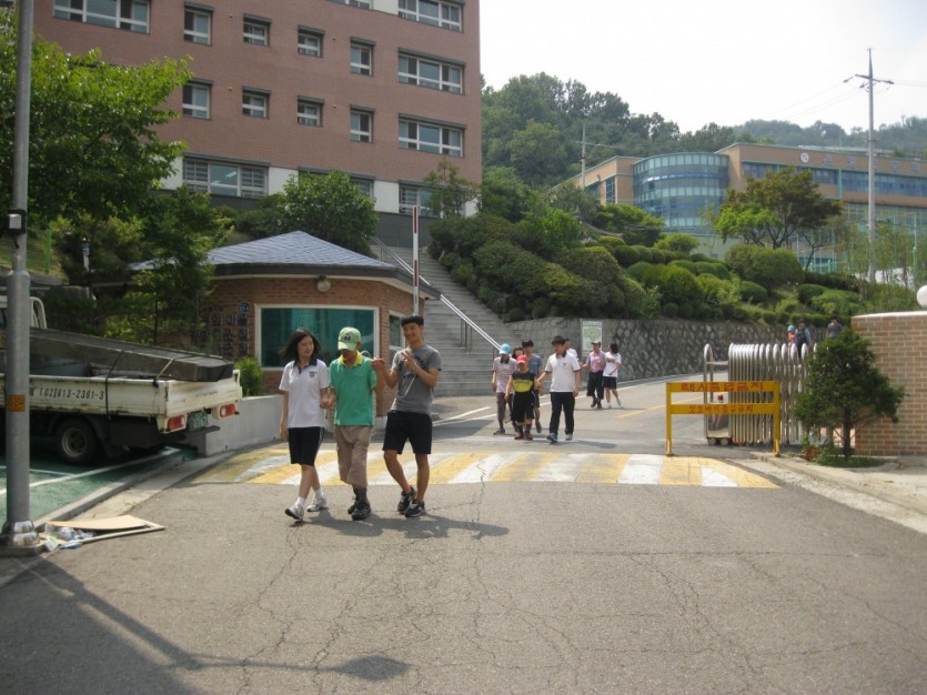 다소 더운 날씨이지만 함께 걸어서 정문을 통과했습니다.