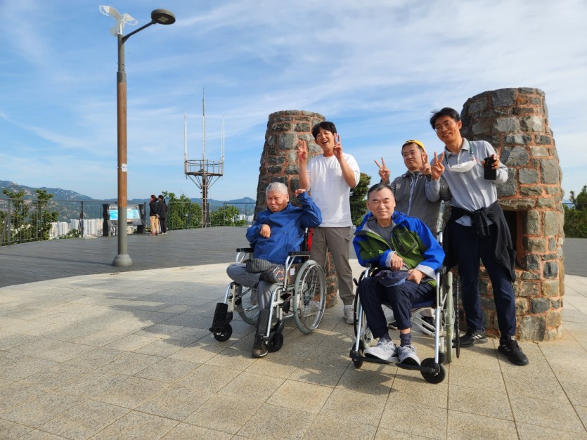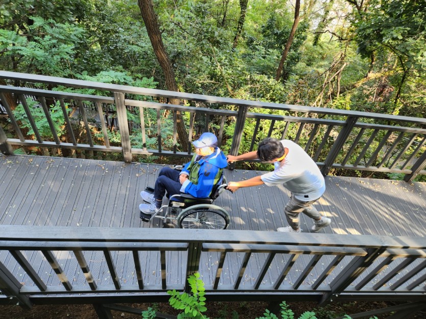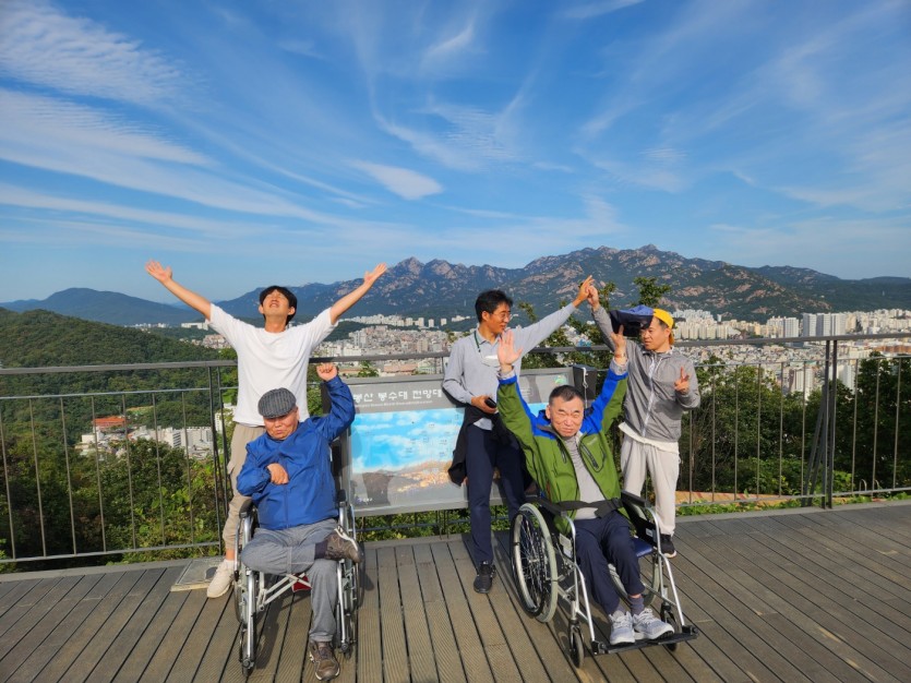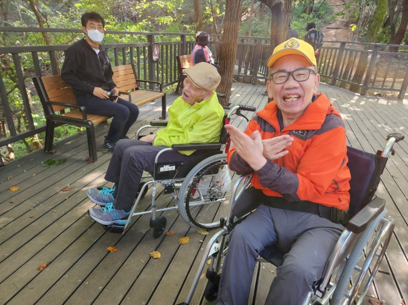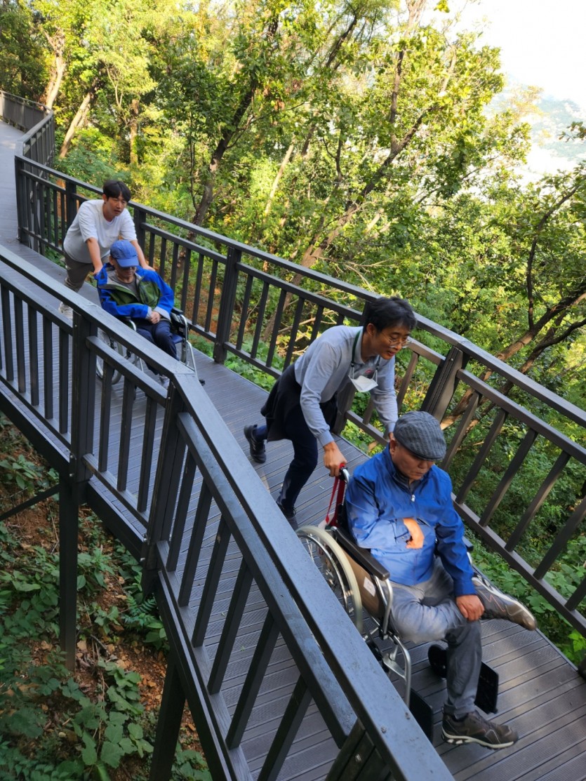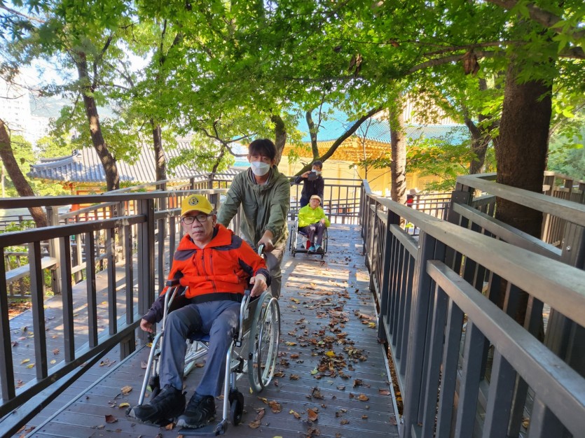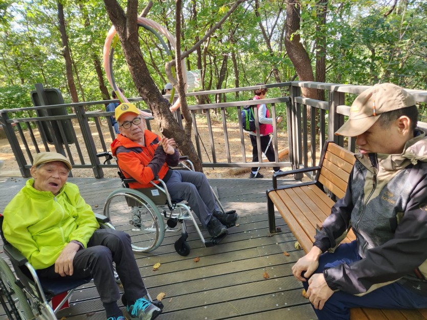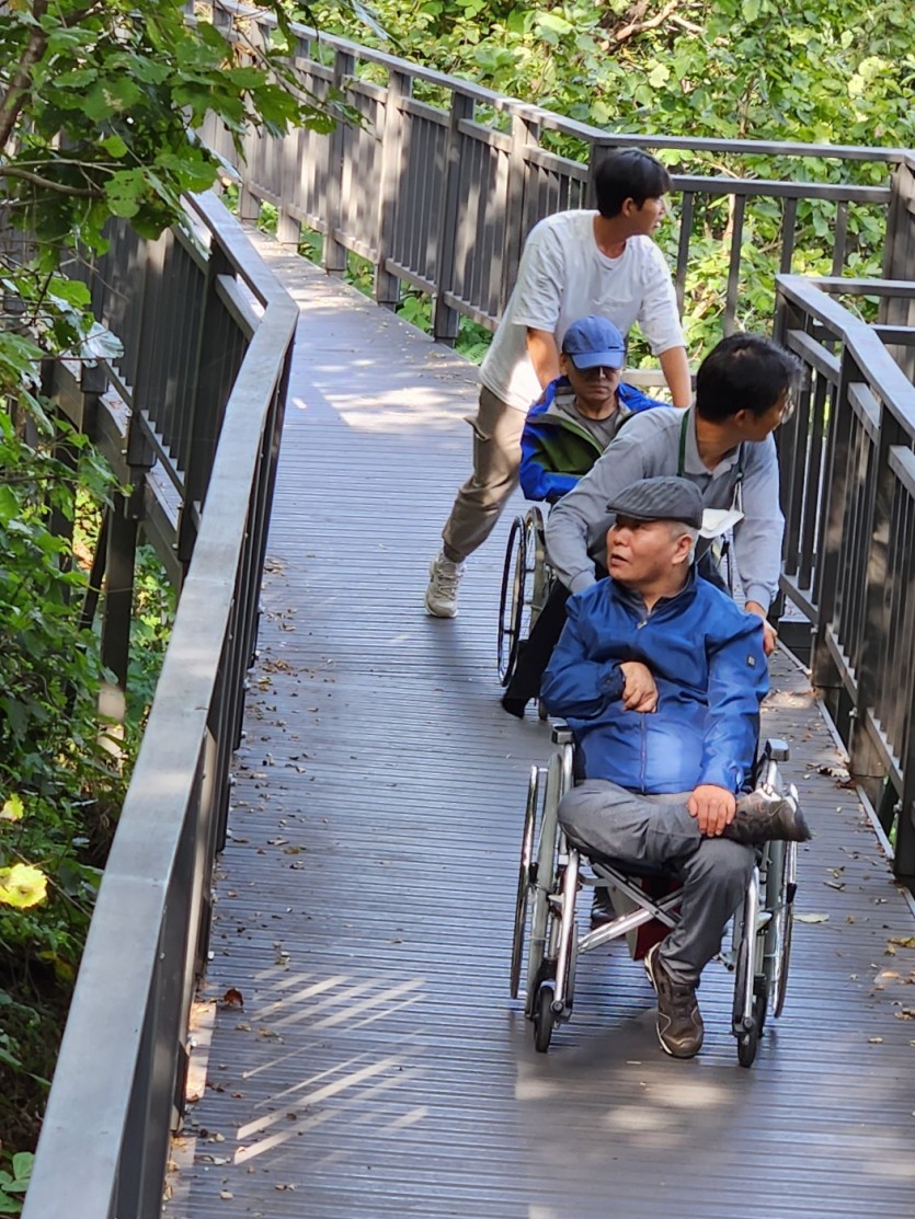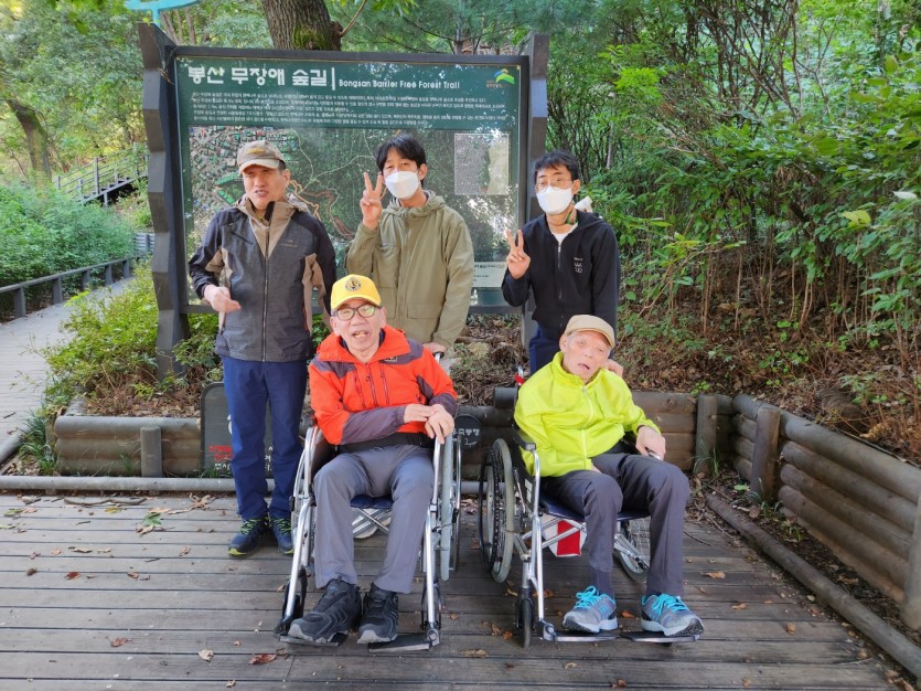 거주인 이야기 | 봉산 편백나무 휠체어 숲 트레킹 페이지 정보 작성자 장설궁 작성일 23-10-09 09:18 조회 8,828회 댓글 0건 본문 평화로운집 가족들과 10월 5일 6일 봉산 편백나무길 휠체어 트레킹을 다녀왔습니다. 비 온 뒤 맑은 하늘과 숲의 향기도 맡고 꽃과 나뭇잎을 만져보며 느껴보고힘들게 정상에 올라 맛보는 과일의 꿀맛 파아란 하늘이 웃어준 즐겁고 행복한 산행이었습니다. 이전글 다음글 목록