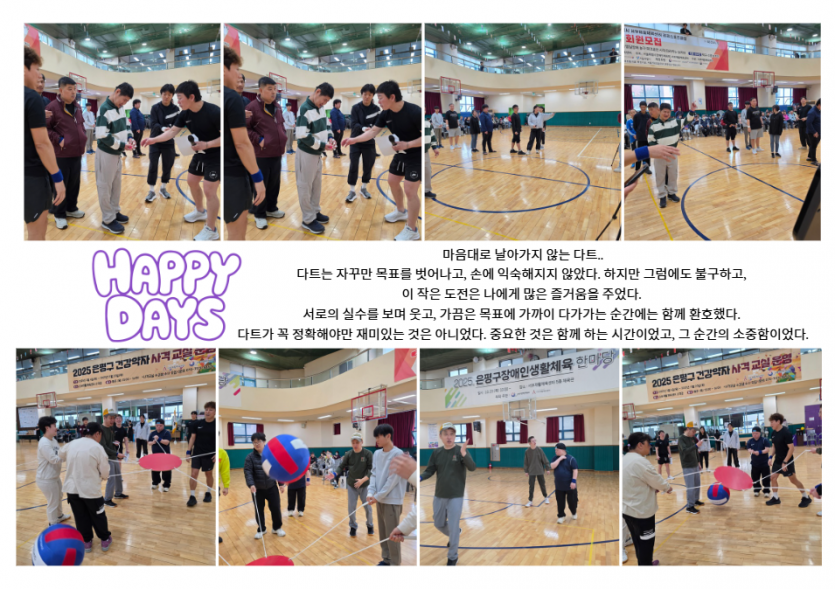 거주인 이야기 | 은평구 생활체육 한마음 페이지 정보 작성자 장설궁 작성일 25-10-27 10:12 조회 2,094회 댓글 0건 본문 은평구 생활체육 한마당에 다녀왔습니다. 여러 친구들과 함께한 시간은 즐거웠습니다.서로의 실력을 겨루기도 하고 응원하며 웃어보기도 하고이런 행사는 지역 사회의 유대감과 건강한 생활을 장려하는 데큰 도움이 되는 것 같습니다. 다음엔 꼭 이길게..라는 한 마디에 내년을 기약해 봅니다. 이전글 다음글 목록