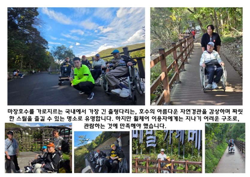 거주인 이야기 | 2025년 12차 문화누리나들이 종료 페이지 정보 작성자 장설궁 작성일 25-10-29 14:21 조회 2,083회 댓글 0건 본문 2025년 10월 25일, 시립평화로운집(중증장애인 거주시설)은 연중 문화 체험 프로그램 '문화누리나들이'의 12차 활동을 행복하게 마무리했습니다마지막회차 에서는 마장 호수 산책과 오랑주리 카페 체험으로사회적 참여와 정서적 안정을 도모 하였습니다. 함께 해주신선생님들에게 감사의 마음을 전합니다.감사합니다. 이전글 다음글 목록