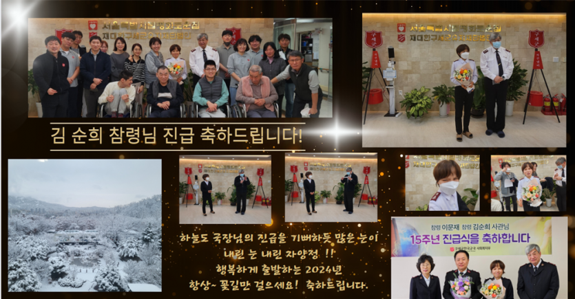 김순희 국장님 (참령) 진급식 페이지 정보 작성자 장설궁 작성일 24-02-22 16:22 조회 6,118회 댓글 0건 본문 김순희 국장님의 (참령)진급식 축하 드립니다.앞으로도 항상 건강하시고 행복하셨으면 좋겠습니다.늘 뒤에서 응원하는 평화로운가족^^진급을 진심으로 축하 드립니다~~~~ 이전글 다음글 목록