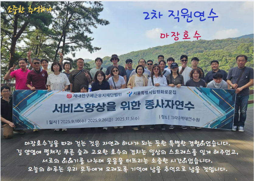 0926 2차 직원연수 페이지 정보 작성자 장설궁 작성일 25-09-29 17:03 조회 1,558회 댓글 0건 본문 0926 2차 직원 연수 3차 직원 연수는 11월 5일 진행 합니다. 2차 진원연수 참여하신 직원여러분 수고 하셨습니다. 경품추첨 하신분은 사회복지지원과로 오시어 경품 받아가시면 감사하겠습니다. 이전글 다음글 목록