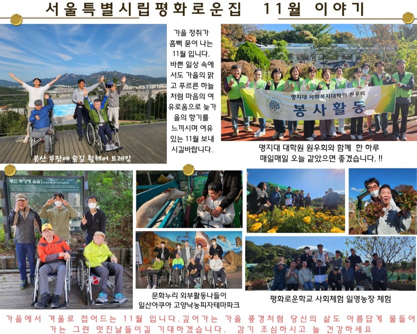 2023년 11월 후원 감사 편지 페이지 정보 작성자 장설궁 작성일 23-10-30 16:49 조회 7,661회 댓글 0건 본문 낙엽이 수북이 쌓인 느티나무길을 걸으며 가을이 얘기하는 소리를 애써 들어보려 합니다 가을이 전해준 아름다운 기억을 간직하며 언제나 즐겁고 좋은 일들만 가득한 11월 되시길 바라며 감사 인사 올려봅니다 이전글 다음글 목록