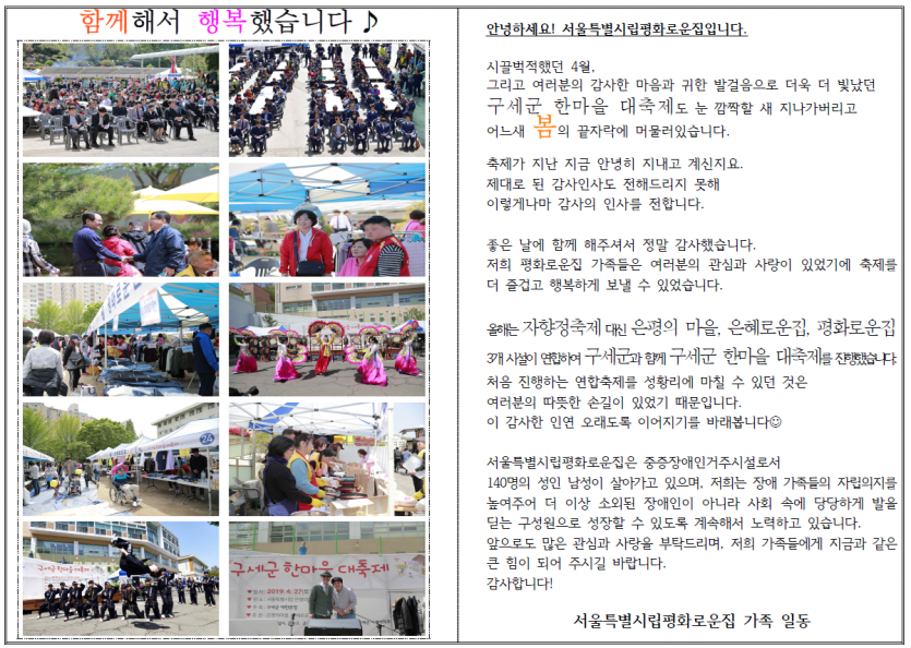2019년 4월 후원자 감사편지_연합축제관련 페이지 정보 작성자 박상은 작성일 20-09-11 11:48 조회 13,628회 댓글 0건 본문 늘 나눔으로 함께해주시는 후원자님께감사의 편지를 올립니다. 이전글 다음글 목록