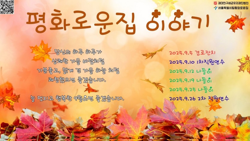 2025년 시립평화로운집 9월 후원감사편지 페이지 정보 작성자 장설궁 작성일 25-08-28 16:38 조회 2,400회 댓글 0건 본문 신선한 바람이 마음까지 맑게 해주는 9월입니다. 풍요로운계절행복과 여유가 가득한 한 달 되시길 바랍니다.9월 바람결에 행복을 보냅니다~~~ 이전글 다음글 목록